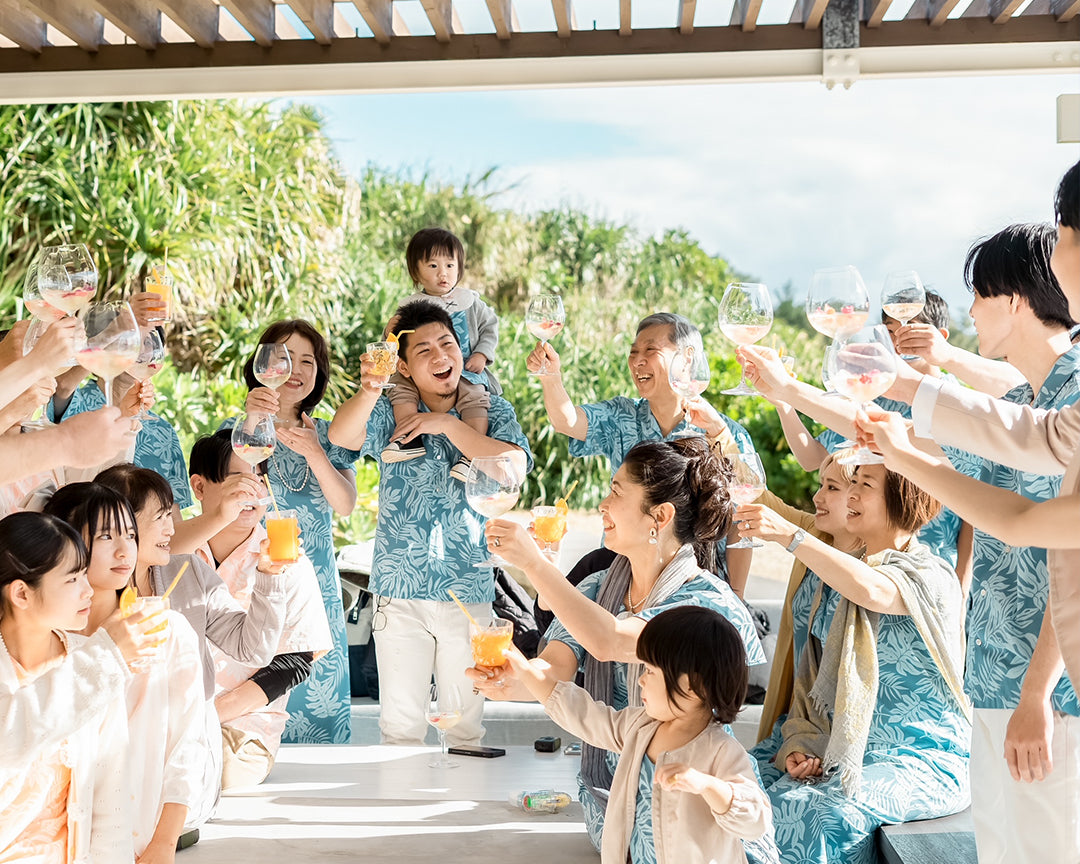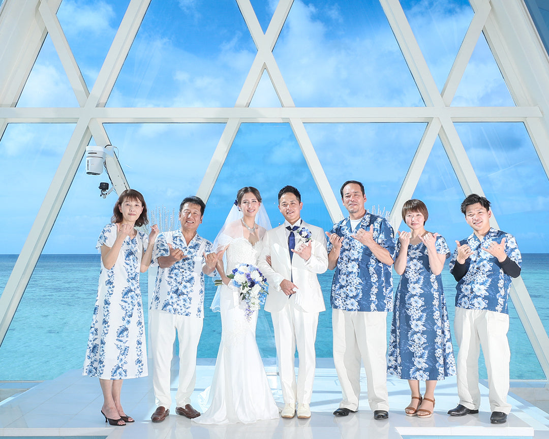 兄弟の結婚式(ハワイ、沖縄)にご家族で出席する際は、思い出の写真がたくさん残せるペアルックのアロハシャツ・かりゆしウエアはいかかでしょうか。