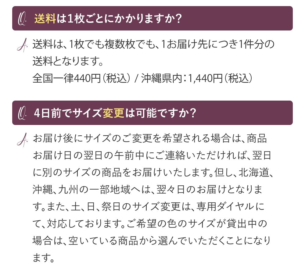 但し、混雑時は、ご希望のお色への変更ができない場合がありますので、お手持ちの洋服のサイズと比較してお選びいただくことをお勧めいたします。