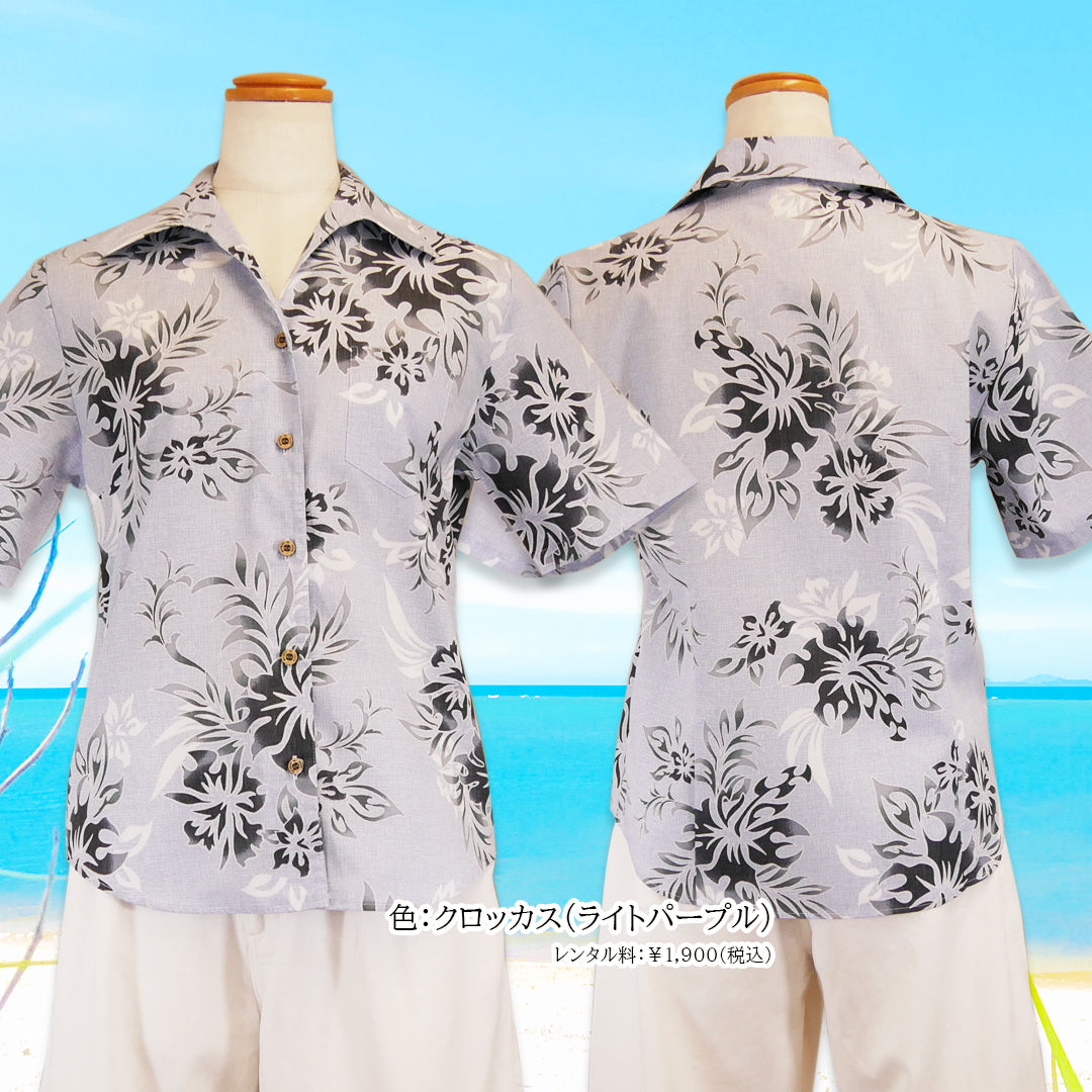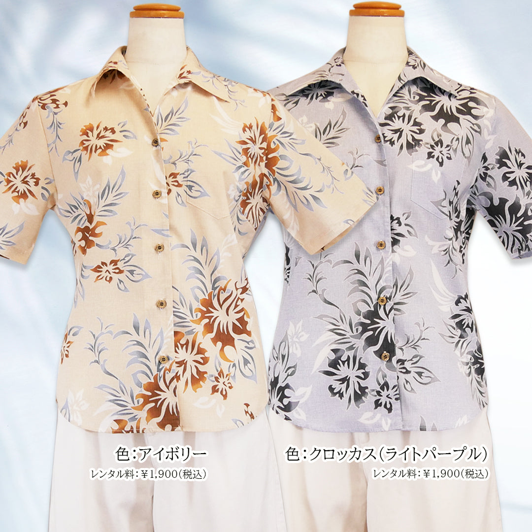 かりゆしウェア レディース かりゆし シャツ 【レンタル品】 R1-8-1 アロハシャツ アロハ 結婚式 沖縄 ゲスト かりゆし レディース ハイビスカス総柄(アイボリー、クロッカス) 沖縄ホテル納品 ムームーアロハ