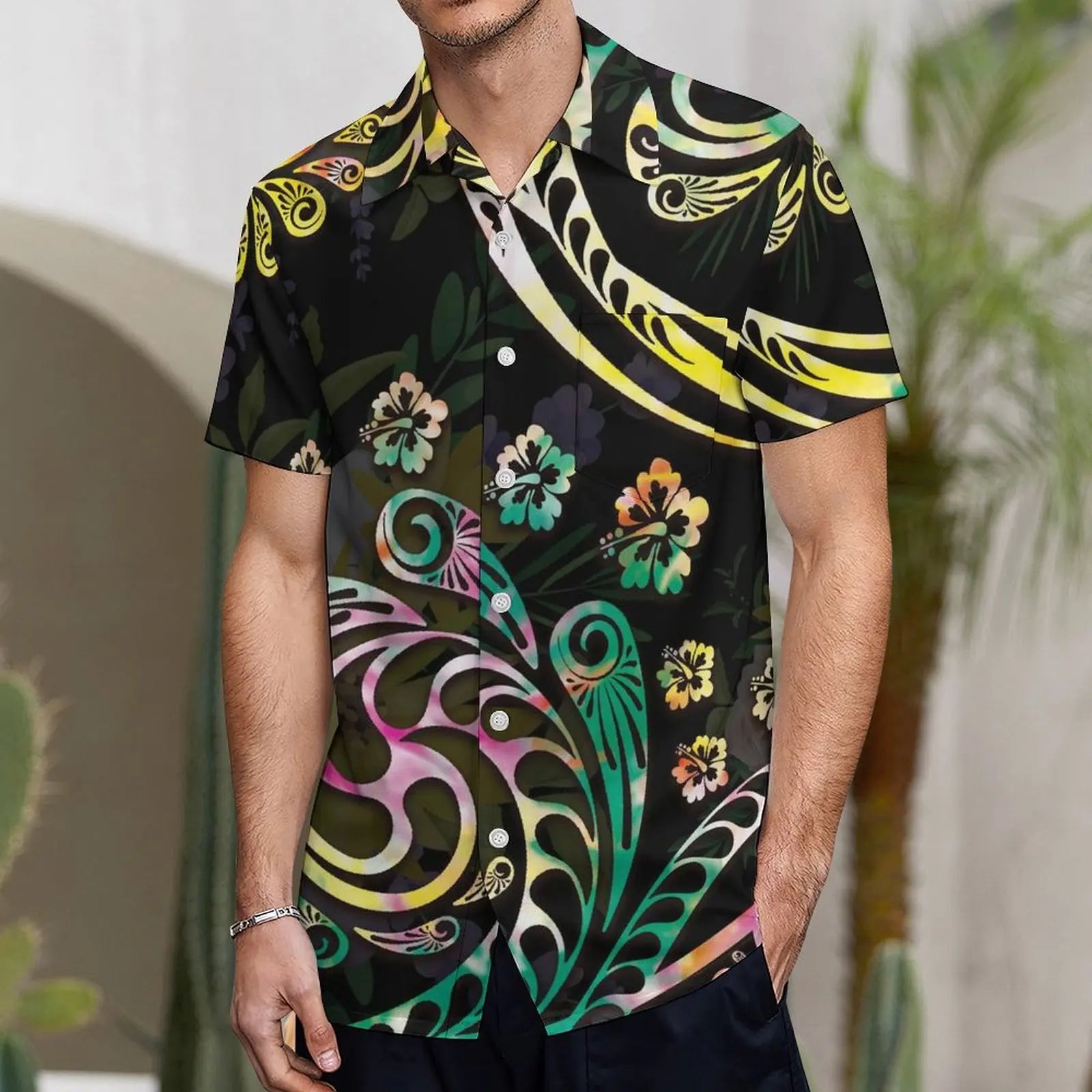 商品No.K0154【購入商品】アロハシャツ 家族(メンズ レディース キッズ) ペアルック ハワイ 結婚式 沖縄 グァム オーストラリア リゾートドレス 色: 黒マルチカラー サイズ:9XL(10L)まで