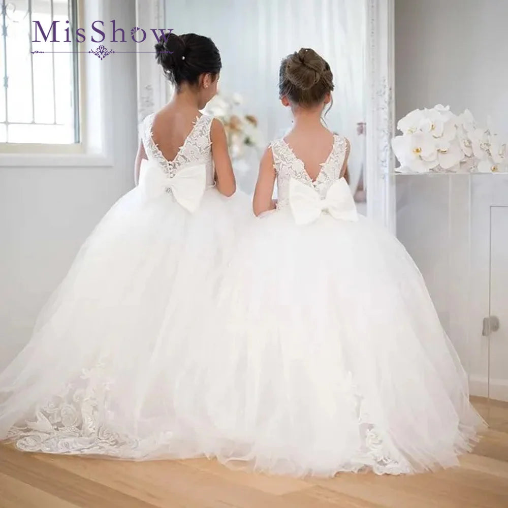 背中には大きなリボンが付いたデザインで、後ろ姿までしっかり可愛く演出。ボールガウンシルエットは、写真映えも抜群で、結婚式・パーティー・記念撮影・ファーストコミュニオンなど幅広い場面に対応します。
