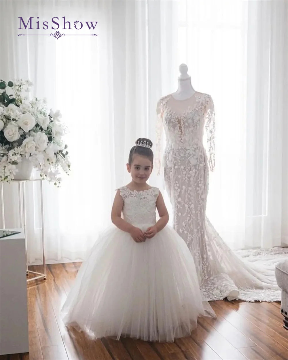 商品No.K00325は、女の子のための華やかなプリンセス風フラワーガールドレスです。上品なレースとふんわりとしたチュールスカートが重なり合い、結婚式やフォーマルなシーンにふさわしい特別な仕上がりに。