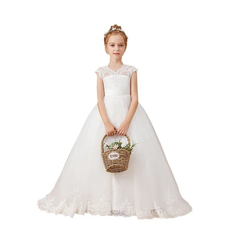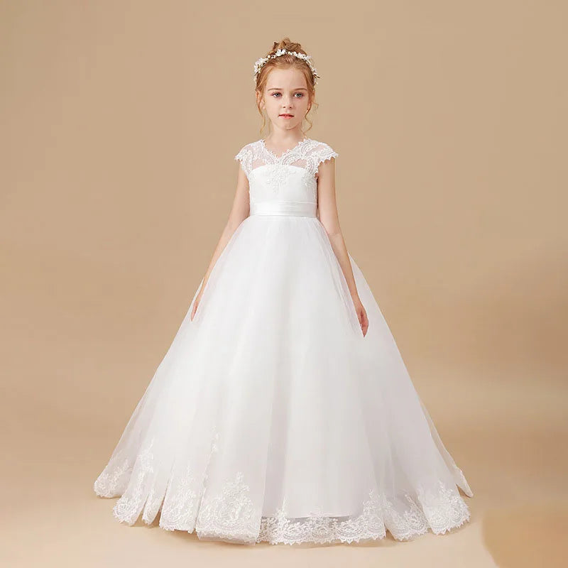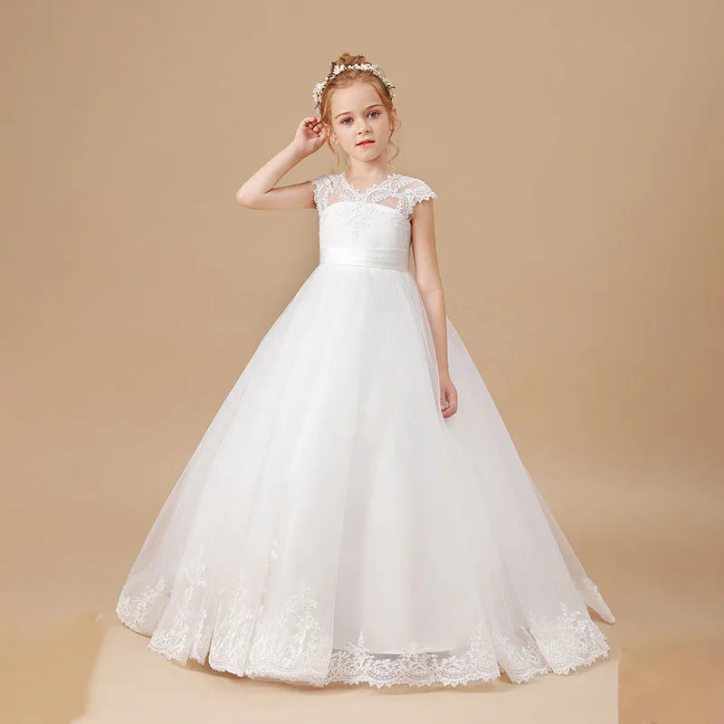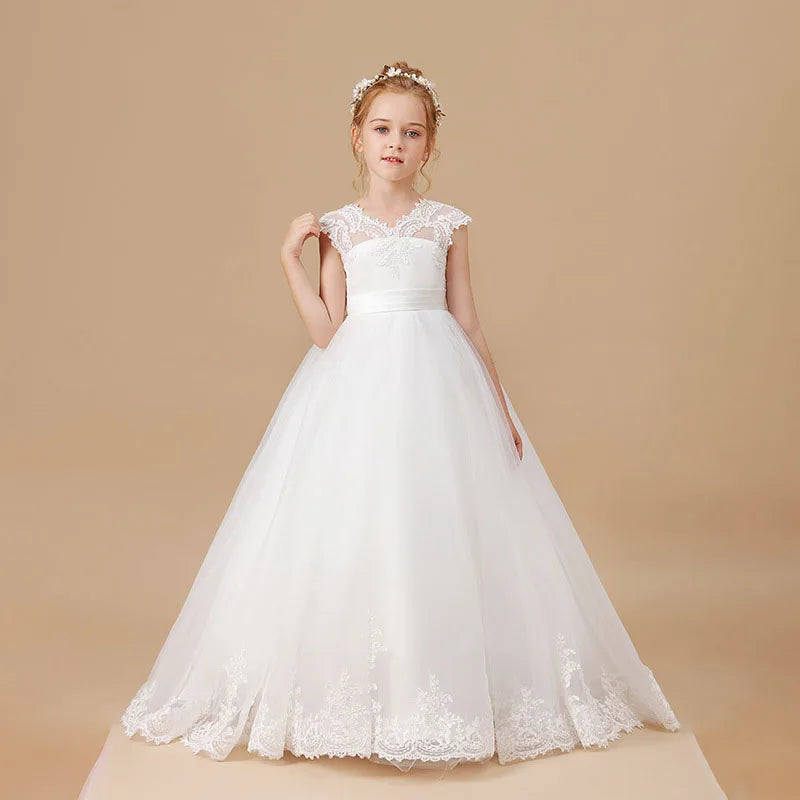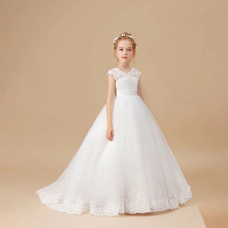 ふんわりと広がるボールガウンシルエットで、結婚式やパーティー、ファーストコミュニオンなど、大切な一日にぴったりの一着です。