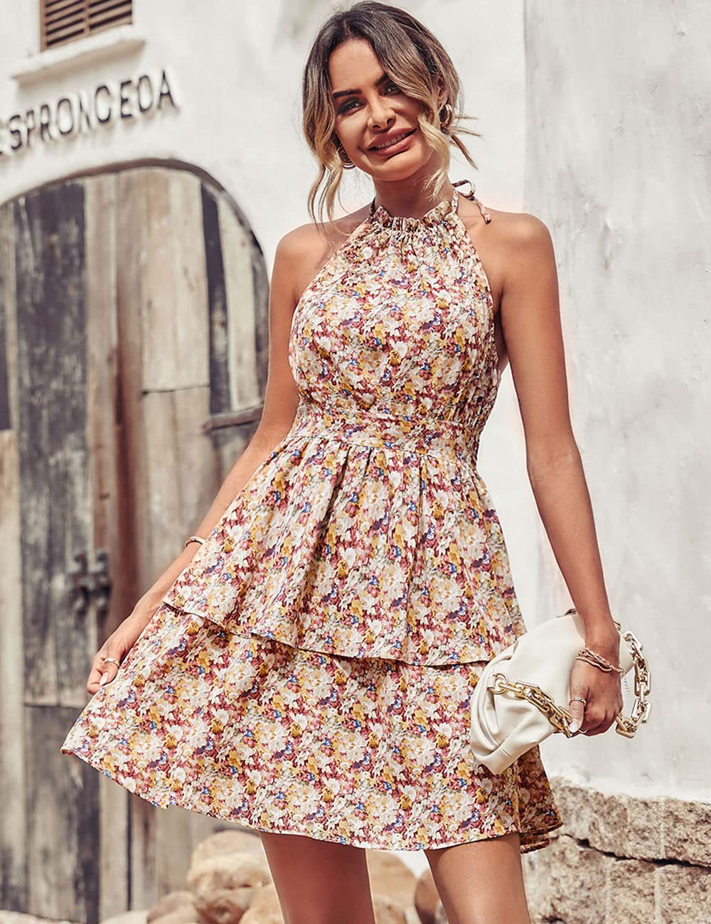 このドレスを着ることで、ハワイや沖縄での特別な日の思い出をさらに素敵に演出し、写真映えも抜群です。このホルターネックバックレスプリントノースリーブドレスで、リゾートでの特別なひとときを楽しみましょう!