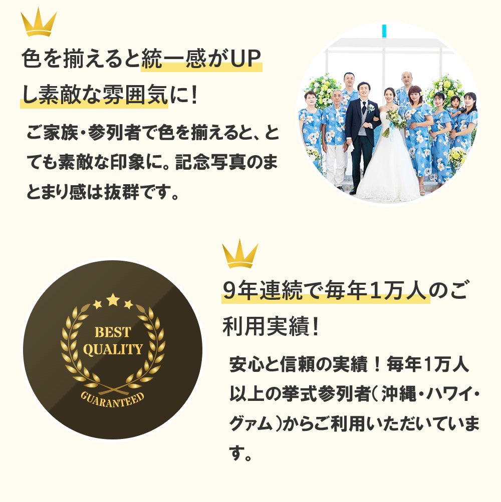 沖縄・ハワイでの結婚式に最適なサービスとして、多くの新郎新婦・ゲストに支持されています。