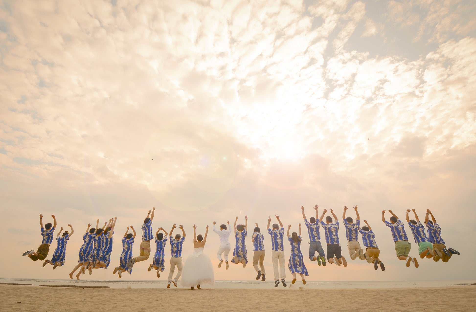 最近ではリゾート婚での衣装指定として、ゲスト全員で色や柄を揃えるケースが増えています。