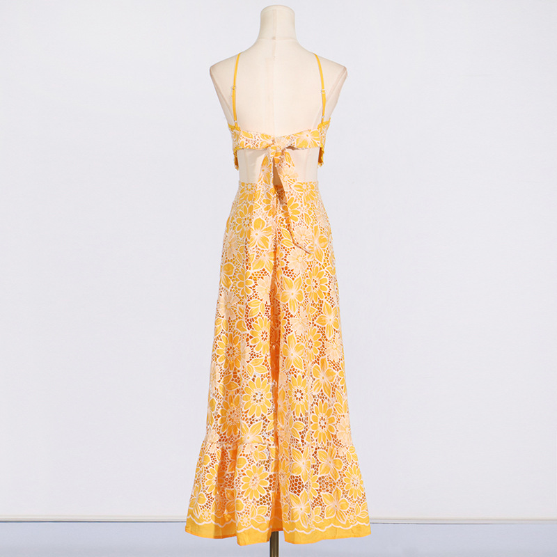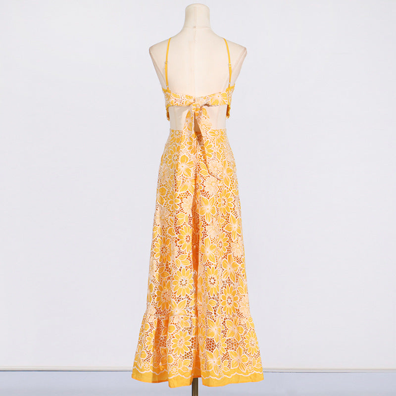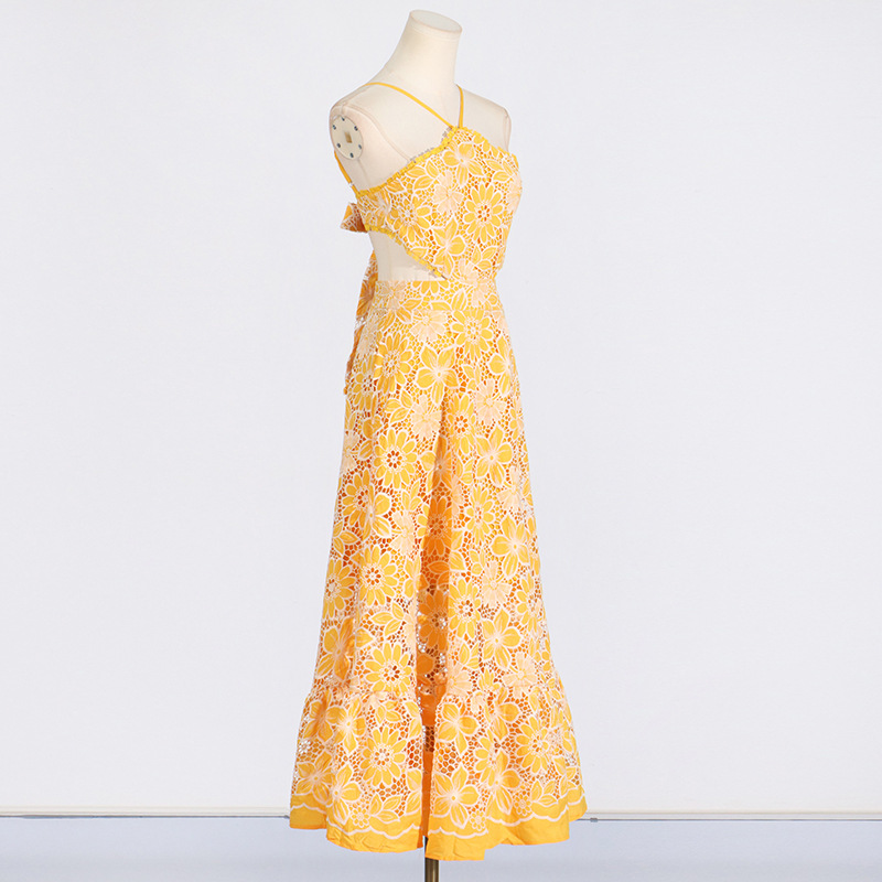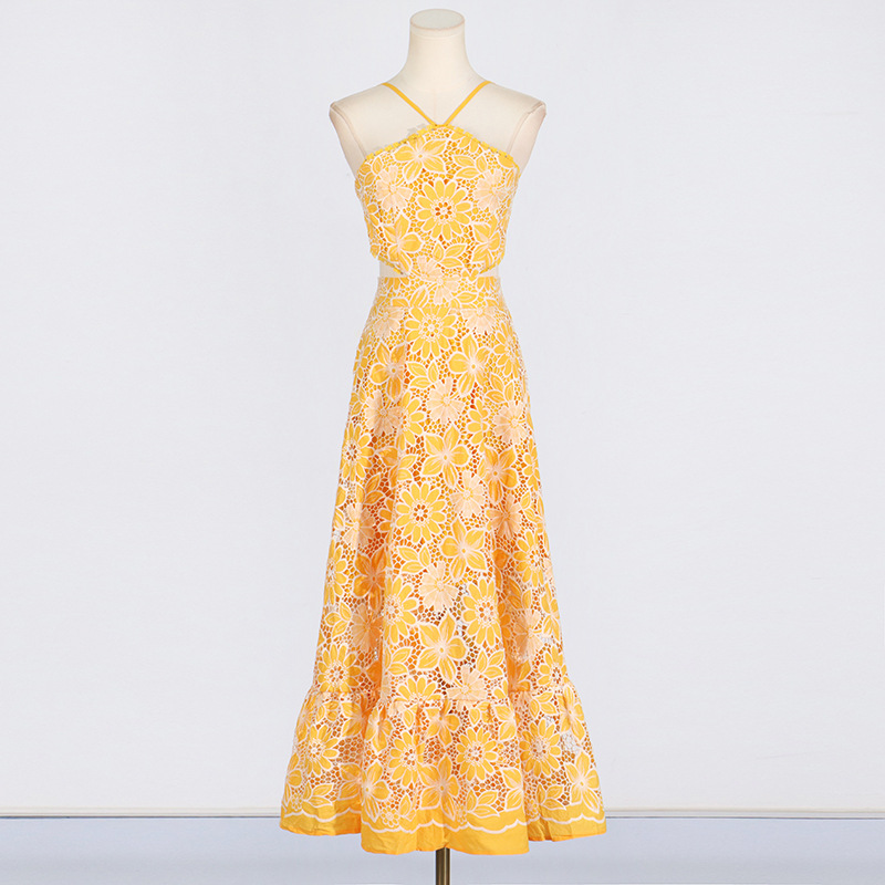 商品No.K0092【購入商品】セクシーなバケーションドレス 夏 パターンプリント ホルターネック ウエストホロウアウト サスペンダードレス レディース